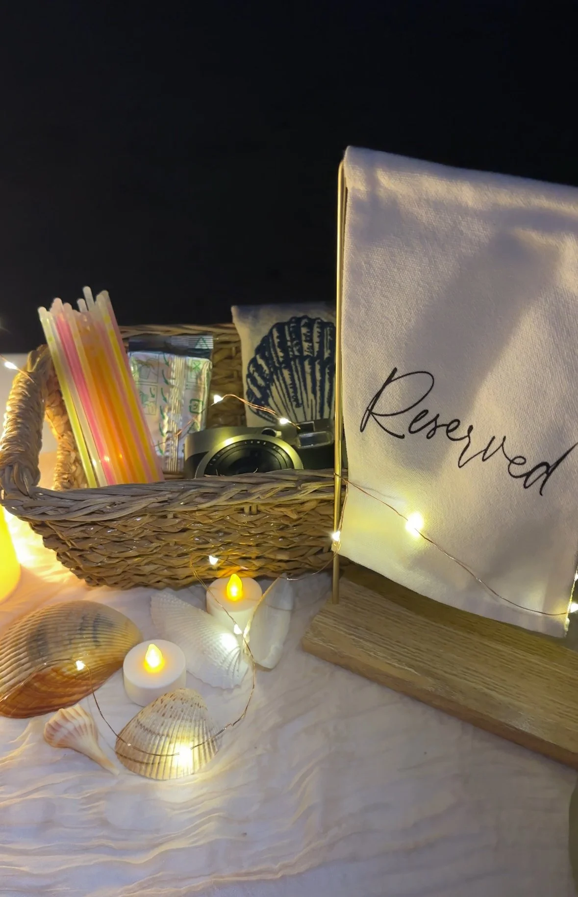 A breezy beachside Luau setup for your closest crew. Perfect for laid-back birthdays, double dates, or sunset hangs with friends. The fire’s lit, the s’mores are stocked, and the beach is all yours.